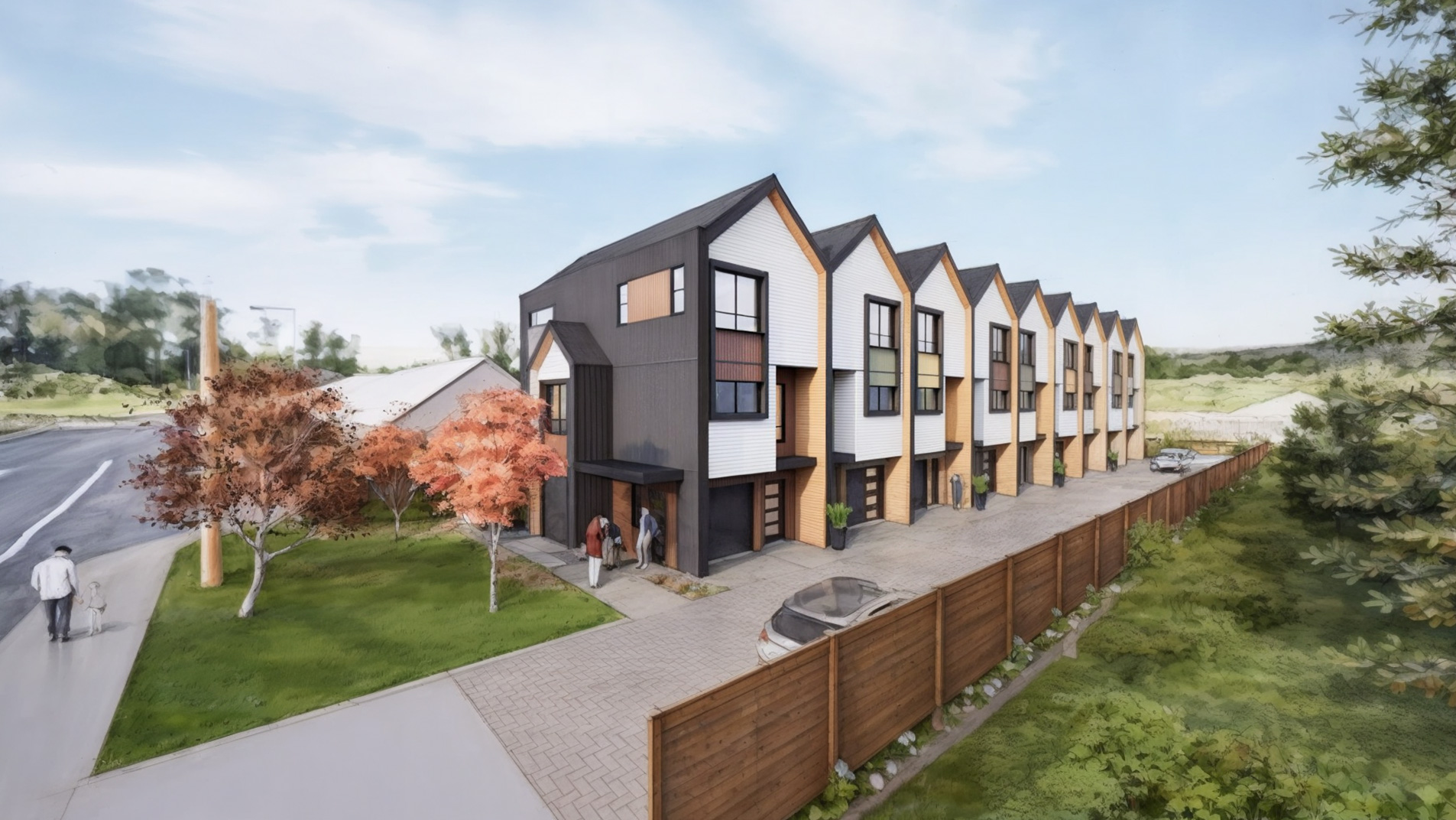 Neutral tones, human-scaled forms, and timeless detailing complement Sidney’s small-town charm, offering residents modern comfort within a lively, walkable setting.