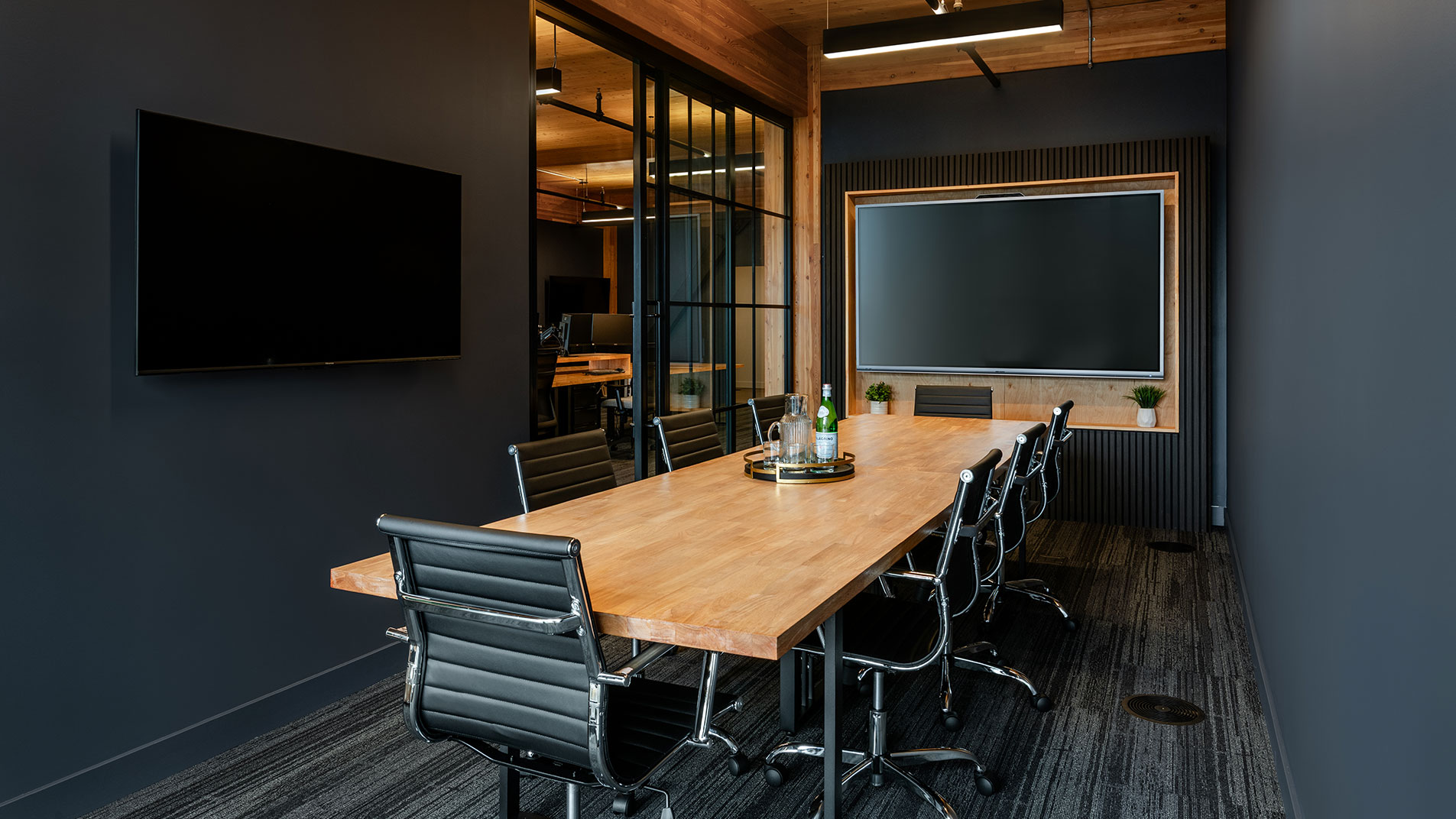 The design integrates a geo-thermal HVAC system with a concealed floor plenum, maintaining the clean aesthetic of the exposed CLT ceilings. Floor-to-ceiling glazing maximizes daylight and visual connection between spaces, while the open-plan layout encourages collaboration and cross-disciplinary dialogue. The result is a refined yet inviting workspace – a modern office space where technology, craftsmanship, and human connection converge.